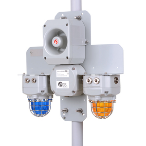 The compact, close coupled alarm bar assembly is ideal for applications where combined audible and visual signals are required to provide multiple warnings. The Ex nA, non-sparking, D2xC4 features a preinstalled cable loom with a large termination area in the integrated junction box. The multi-stage alarm horn sounder can be configured to activate with the a visual signal.